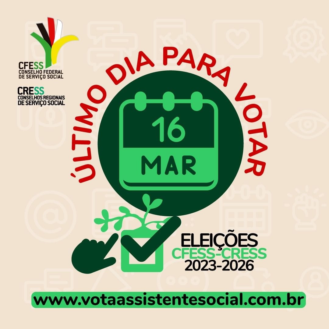 🌿 Eleições CFESS-CRESS: hoje (16/3) é o último dia para votar!