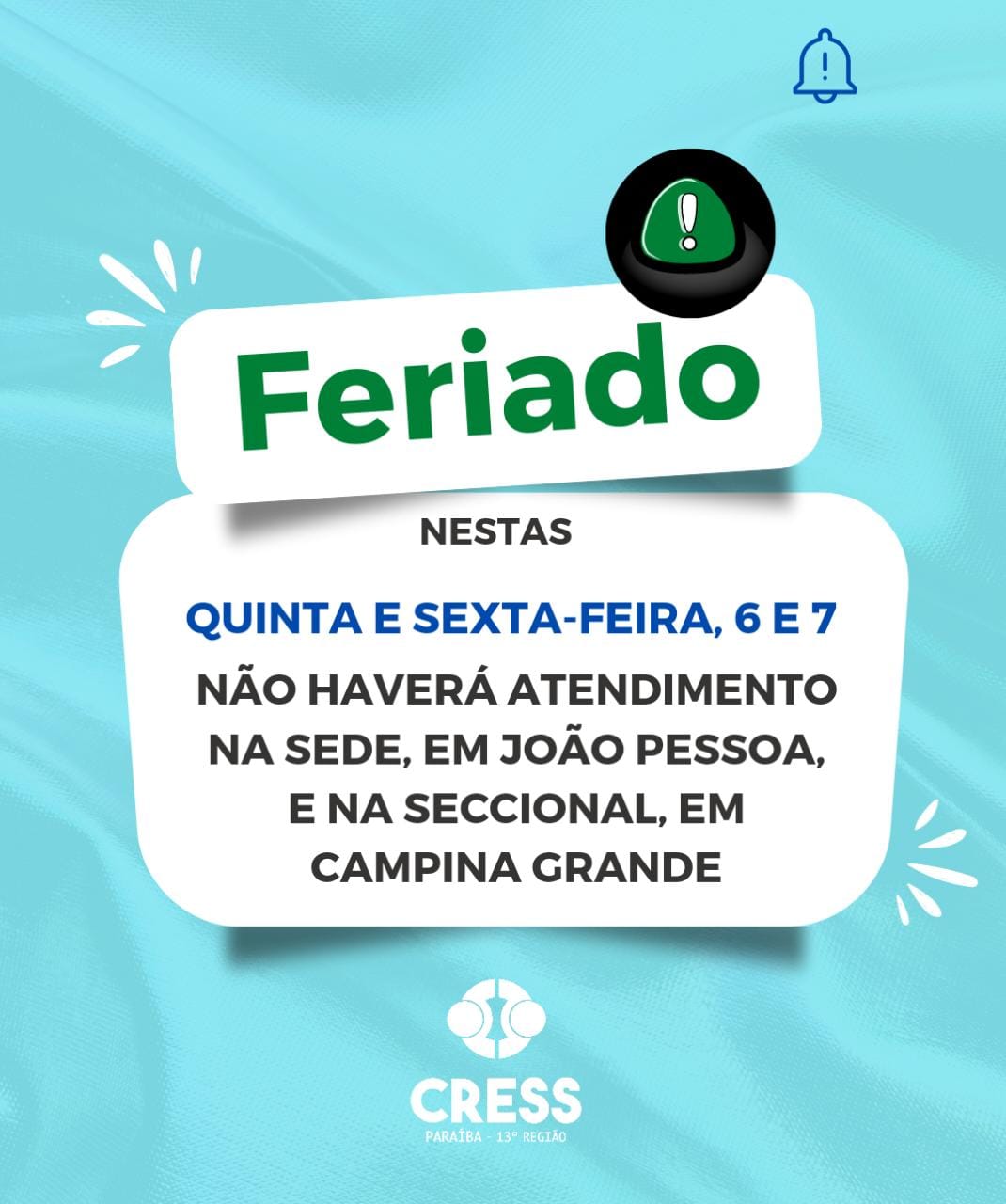 🕊O CRESS/PB deseja um feriado de paz a todas e todos!